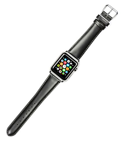 -. Title : Debeer Replacement Watch Strap - Stage Leather - Black - Fits 38mm Apple Watch [Black Adapters]