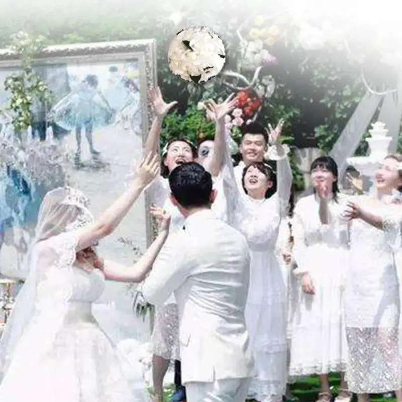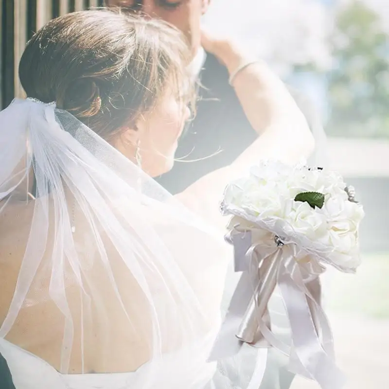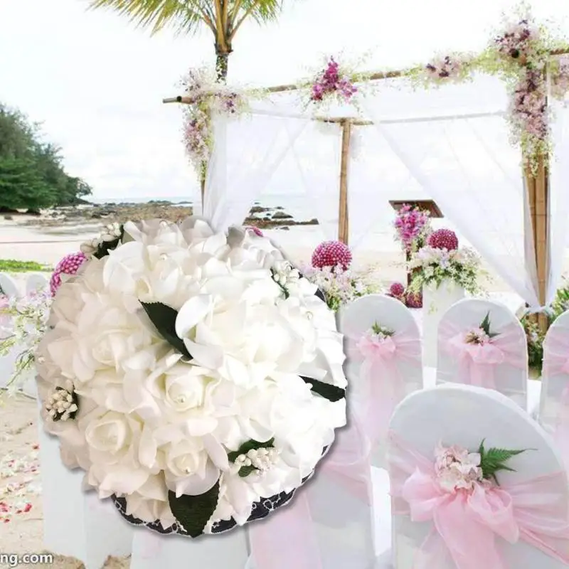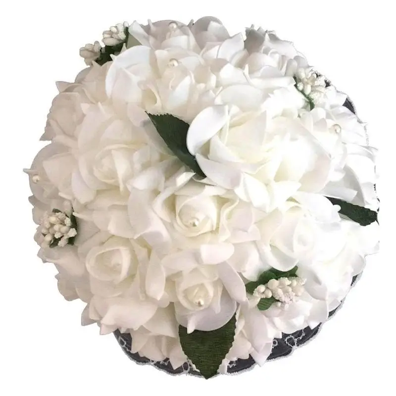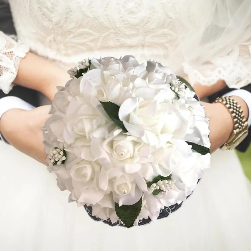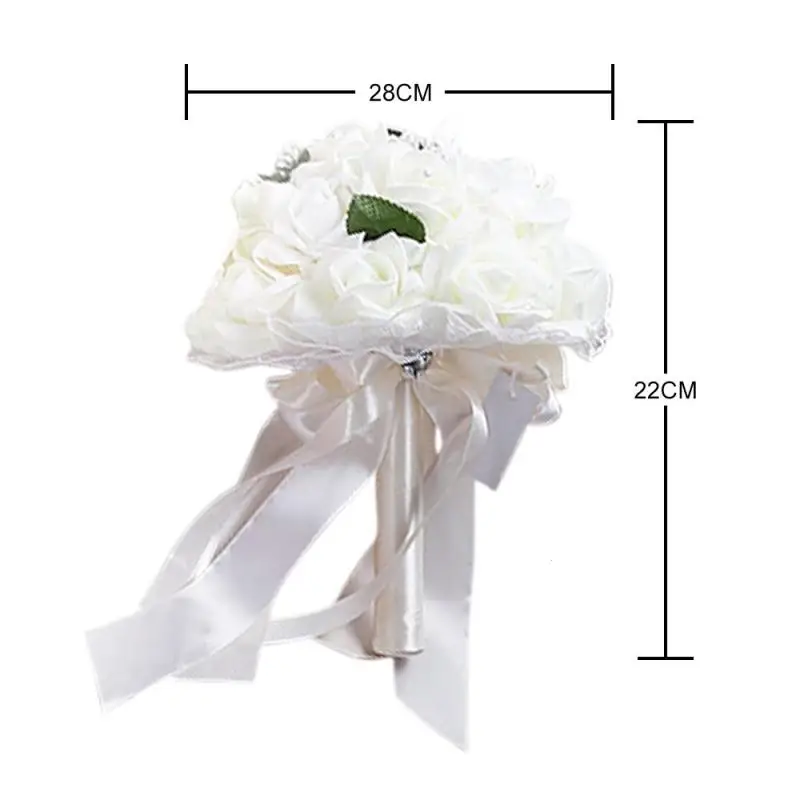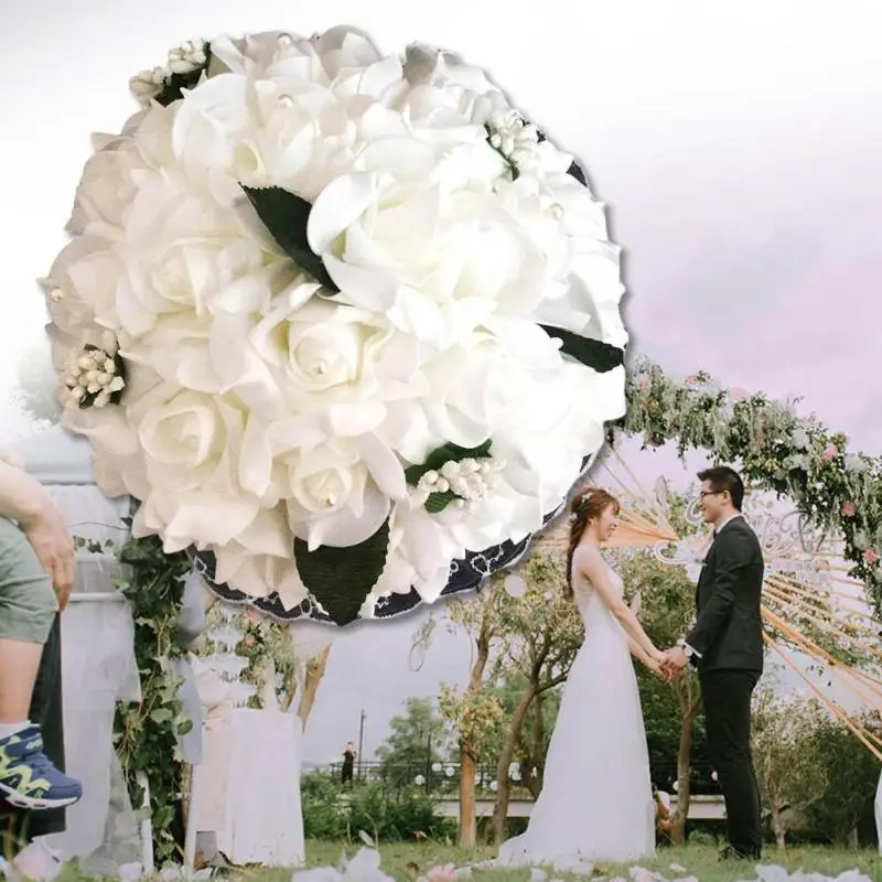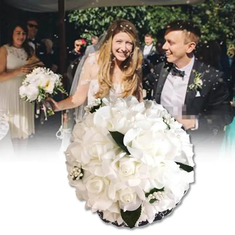 NEW Ivory Rose Blanc Crystal Bridal Wedding Bouquet Bridesmaid Artificial Flower Silk Ribbon Half Ball Holding Flowers A30A