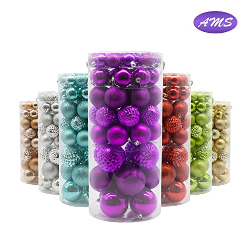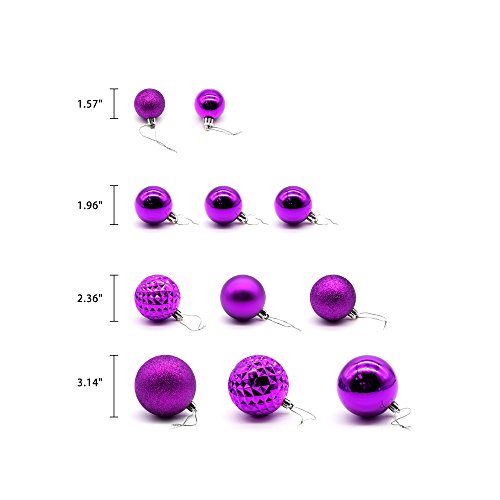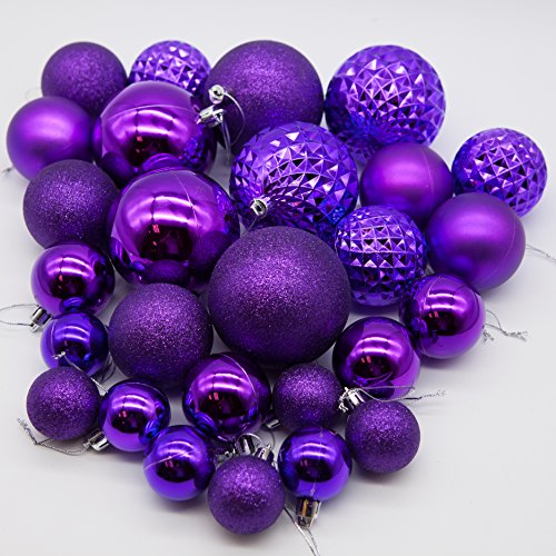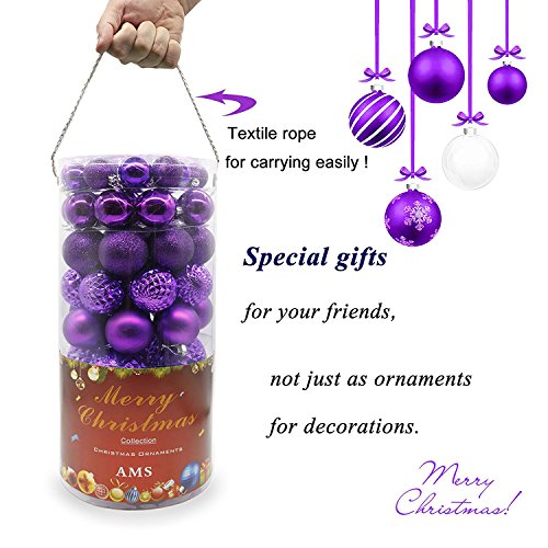 AMS Christmas Balls Plastic Diversiform Ornaments with 4 Size Shatterproof Tree Pendants Accessories Seasonal Garniture for Xmas, Holiday and Party Widgets (68ct , Purple)