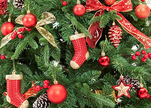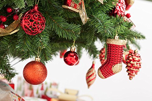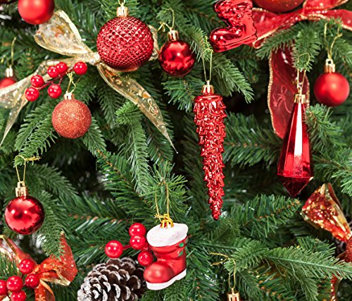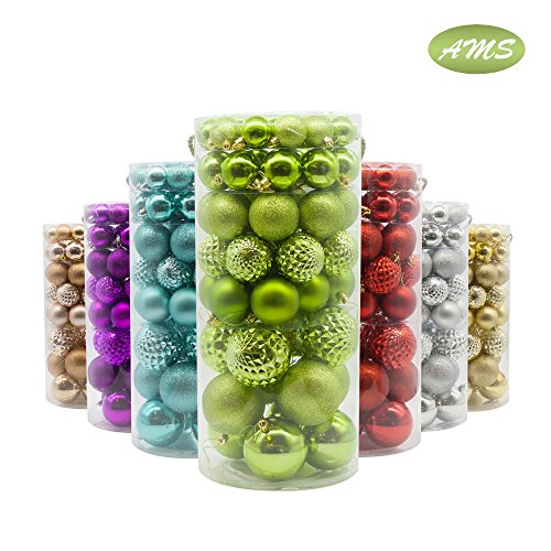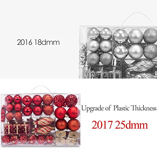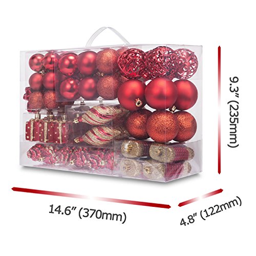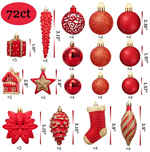 AMS 72ct Christmas Ball Assorted Pendant Shatterproof Ball Ornament Set Seasonal Decorations with Reusable Hand-help Gift Boxes Ideal for Xmas, Holiday and Party(72ct, Red)