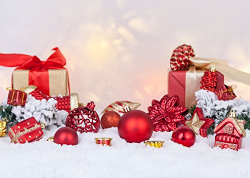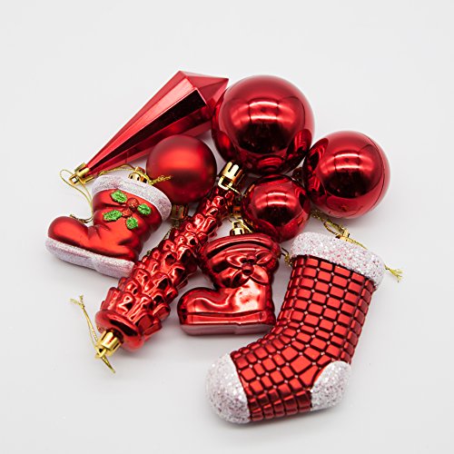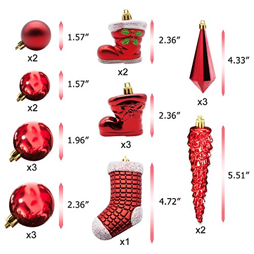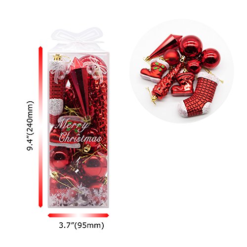 AMS 21pcs Christmas Balls Ornaments Set Shatterproof Tree Hangings, Seasonal Decorations with Reusable Gift Boxes Ideal for Xmas, Holiday and Party, ( 21pcs, Red)