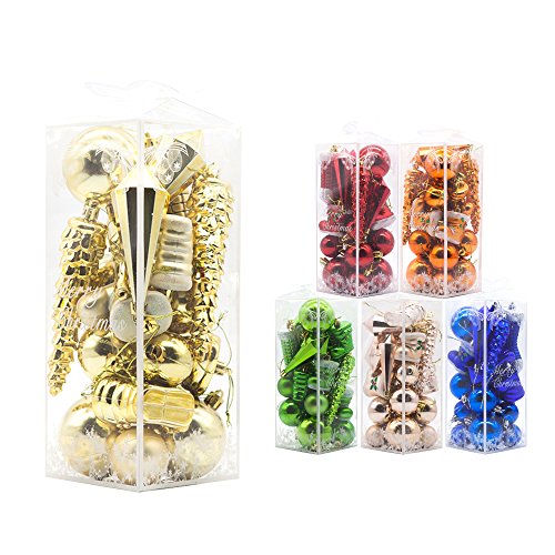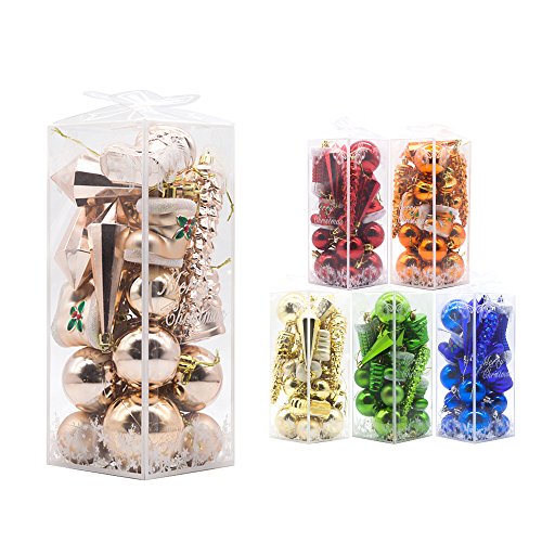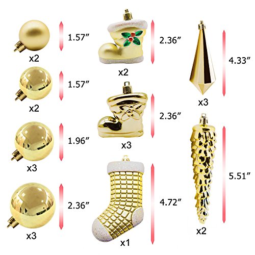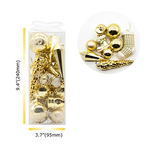 AMS 21pcs Christmas Balls Ornaments Set Shatterproof Tree Hangings, Seasonal Decorations with Reusable Gift Boxes Ideal for Xmas, Holiday and Party, ( 21pcs, Gold)