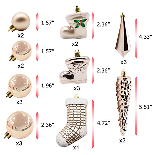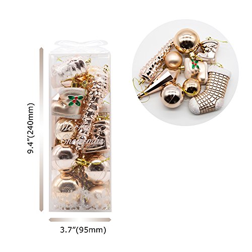 AMS 21pcs Christmas Balls Ornaments Set Shatterproof Tree Hangings, Seasonal Decorations with Reusable Gift Boxes Ideal for Xmas, Holiday and Party, ( 21pcs, Champagne)