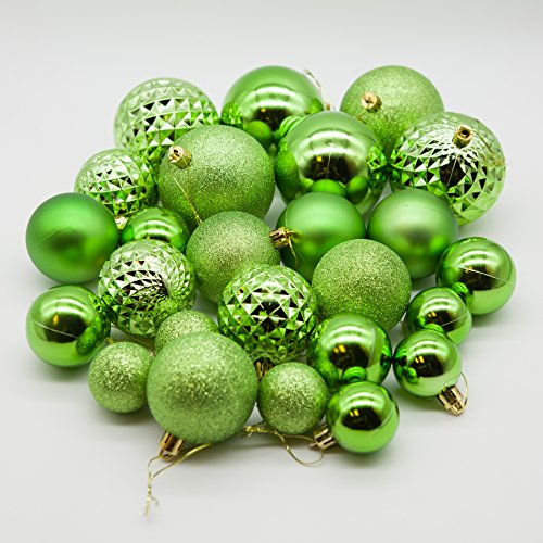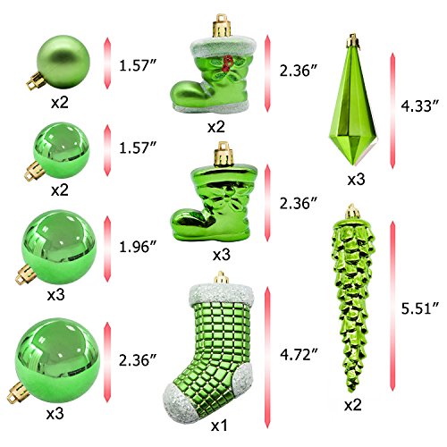 AMS 21pcs Christmas Balls Ornaments Set Shatterproof Tree Hangings, Seasonal Decorations with Reusable Gift Boxes Ideal for Xmas, Holiday and Party, ( 21pcs, Fruit-green)