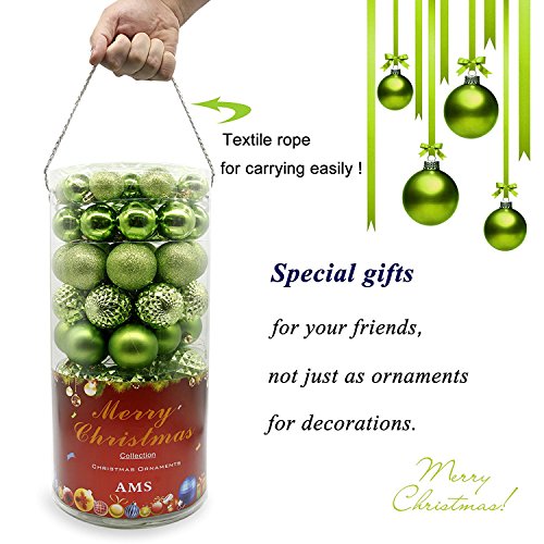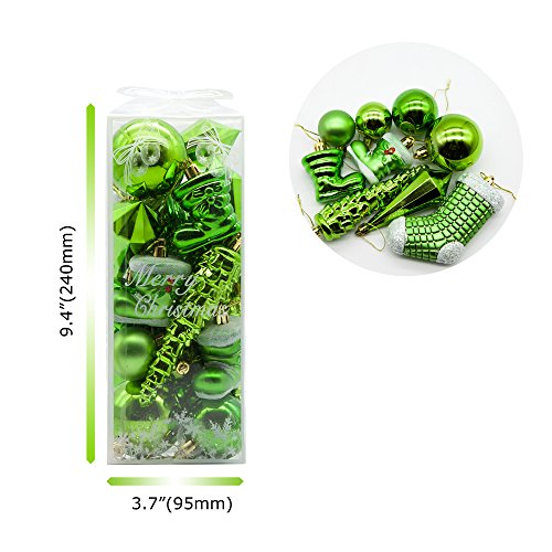 AMS Christmas Balls Plastic Diversiform Ornaments with 4 Size Shatterproof Tree Pendants Accessories Seasonal Garniture for Xmas, Holiday and Party Widgets (68ct , Green)