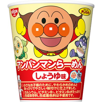 면은 부드러움등 거북이,깨끗하게(산뜻하게) 간장 맛의 스프에 자녀분들이 먹어 쉬움에도 배려한 라면.뚜껑의 도안은 3종류.구재료는 달걀,파에 덧붙여,외형으로도 즐거운 호빵맨(앙팡맨)과 바이킹맨이 되면 들어감.