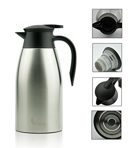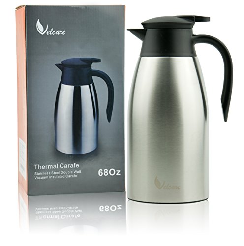 Thermal Carafe 68Oz Stainless Steel Double Walled Insulated Vacuum Thermos with Lid for Coffee Tea By Velcare