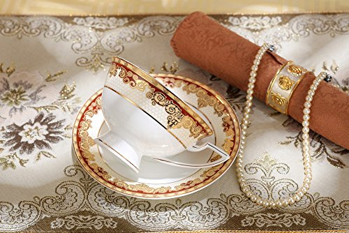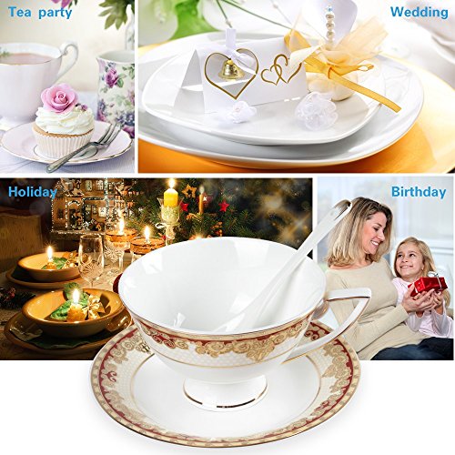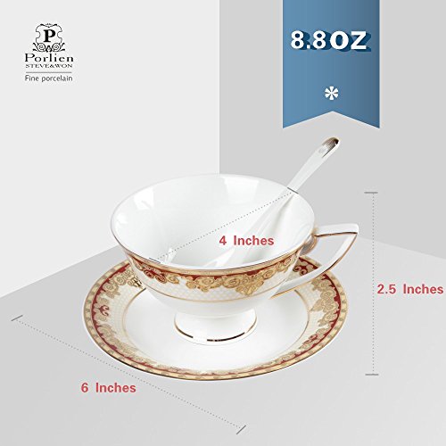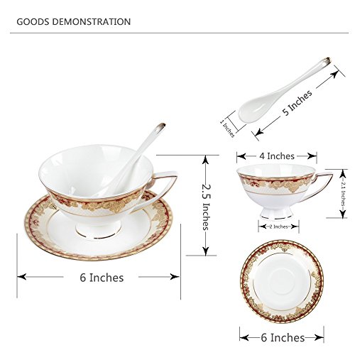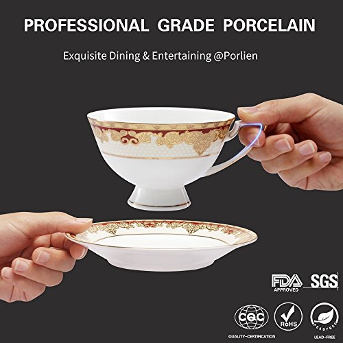 Studio : Porlien Publisher : Porlien Product Description Description: Luxury gold elegantly surrounds the edge of the teacups and saucers, complementing red line adding a touch, which brightens up your teatime. The beautiful coffee cups and saucers set can satisfy your needs no matter you use them for everyday drink or treating on special occassions. About us Porlien, dedicated to producing and bringing porcelain with supreme quality to china lovers all over the world for years, is well-known for the toughness, thinness, heat preservation, and safety of its porcelain. All tableware we offer is not only tough and light, but approved by FDA and IOS. No matter you are looking for dinnerware for household use, restaurants, cafes or hotels, Porlien can satisfy your needs. We strive to create better life for our customers by providing safe and durable dinnerware for them. What's in the box: cup * 4 saucer * 4 spoon*4 0