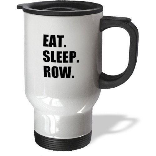 3dRose tm_180434_1 Eat Sleep Row-Fun Gift for Rowing Enthusiasts Rower Sport Black Text, Travel Mug, 14-Ounce, Stainless Steel
