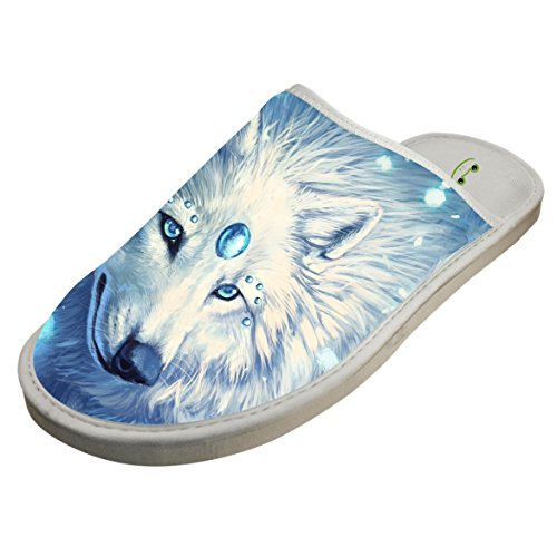 (BEAUTYSLIPPERS)/Men's/Sandals/DIRECT FROM USA/White Wolf Lovers Customizable Flat Toe Closed Memory Foam House Slipper Indoor Slip Shoes