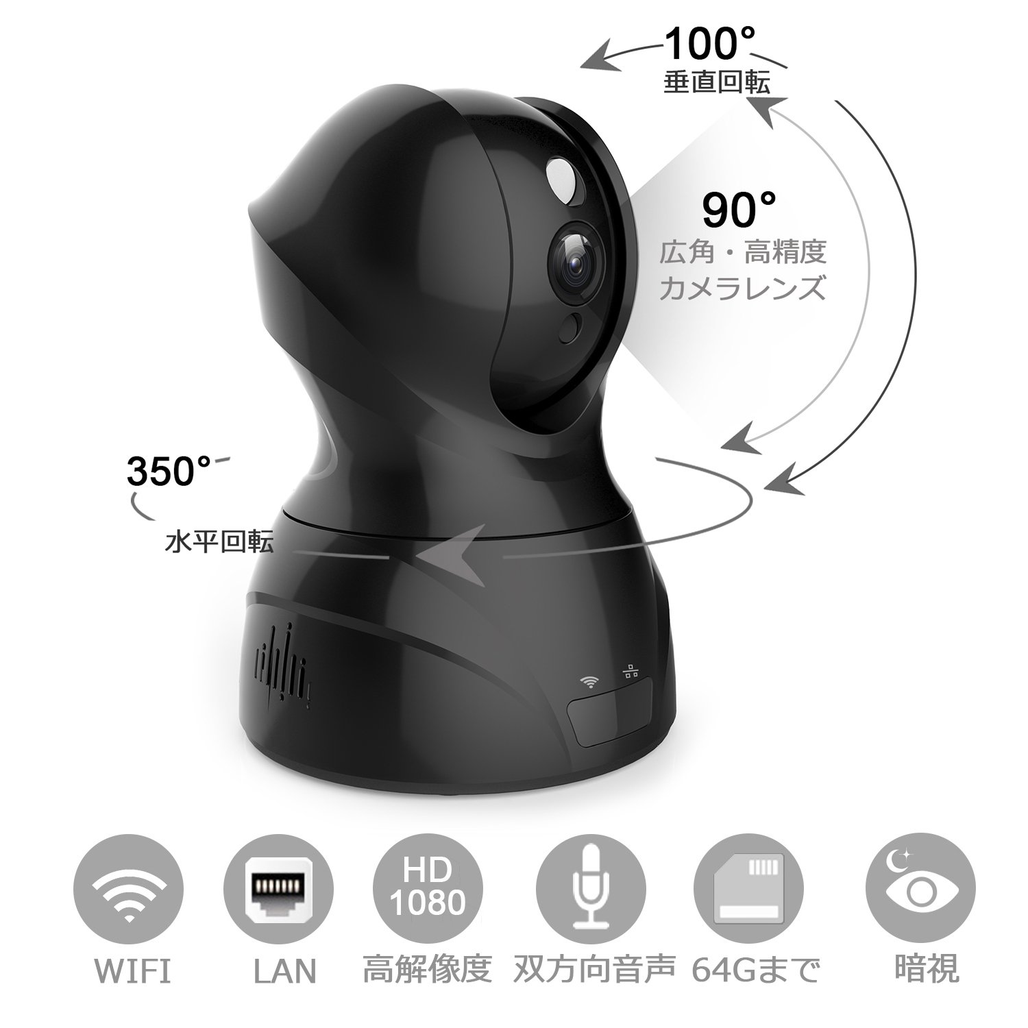 Pan "Left and right head swinging" 350 ° & Tilt "Upper and lower head swinging" Since it is a 100 ° swing type security camera,