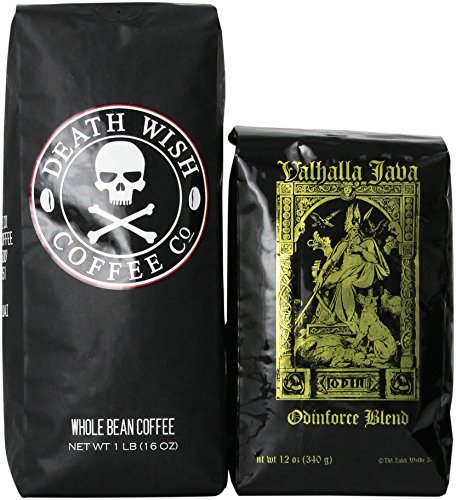 Death Wish & Valhalla Java Whole Bean Coffee Bundle Deal, USDA Certified Organic & Fair Trade (1 of Each Bag)