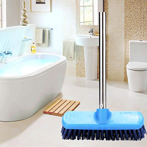 - 45 Degrees Unique Design: 45 degrees screw thread scrub brush head with stainless steel long handle, without climbing, crouching, climbing, or kneeling to clean the blind spots of the floor, corners of walls and bathroom.