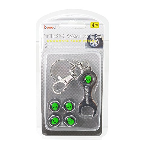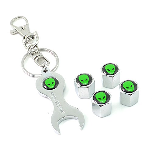 iDoood Wrench Keychain Chrome Car Tire Valve Stem Caps (Logo:Alien)
