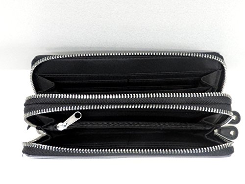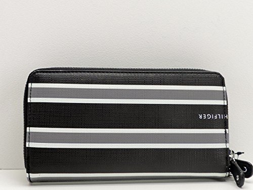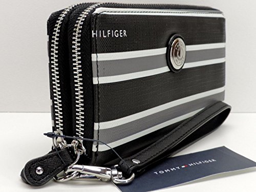 Tommy Hilfiger Black White Double Zip Around Wallet Wristlet Clutch