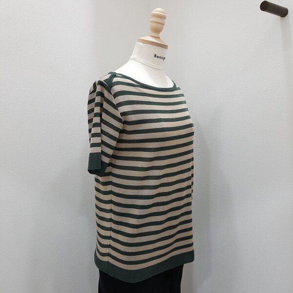 2018년 가을 신상 니트 티셔츠로, 보트넥에 심플하게 입으시기 좋은 모던한 디자인입니다.