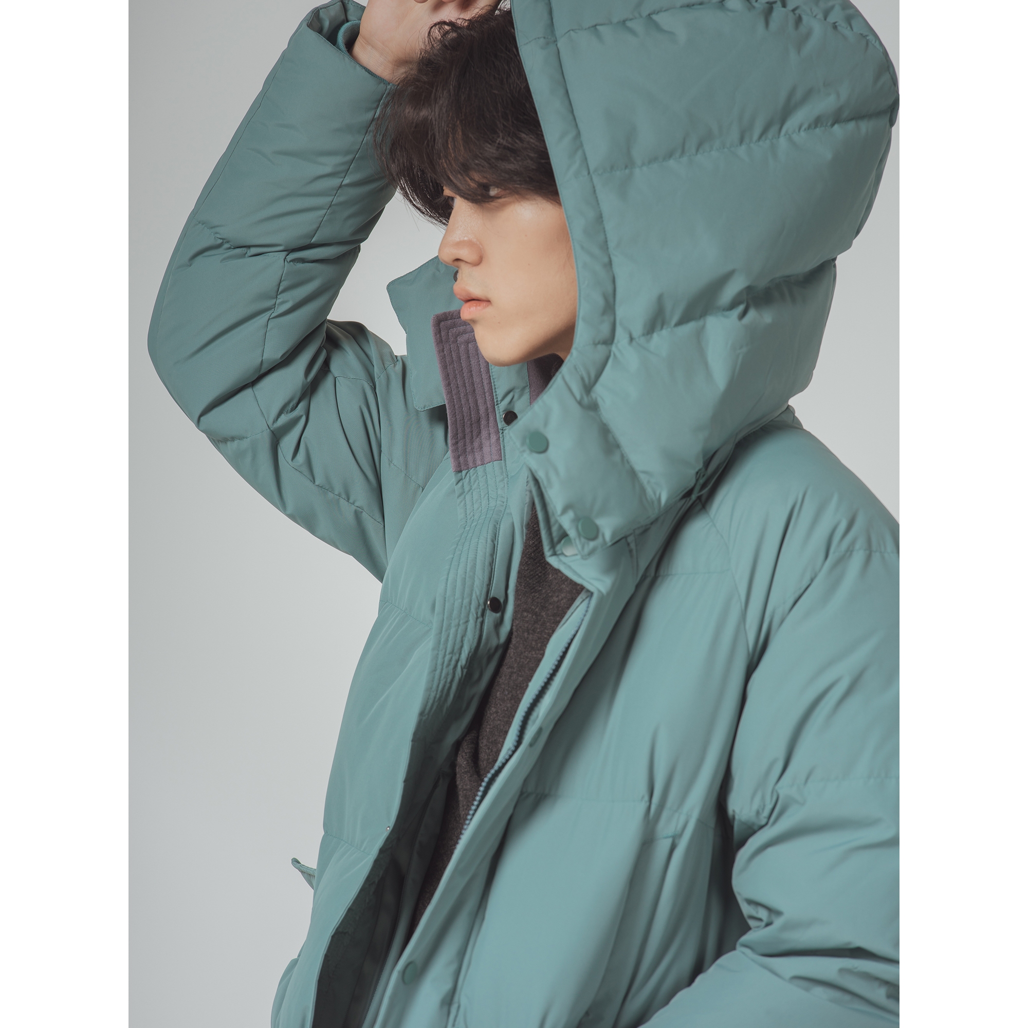 컬렉션 : 2018 Fall/Winter 디자인 포인트 : - 베이직한 핏과 컬러감을 가진 솔리드 다운 점퍼- 탈부착 가능한 후드 디테일과 TOP OPEN 지퍼 디테일을 가진 실용적인 디자인- 구스다운 충전재로 보온성을 높인 겨울철 데일리 아우터 스타일링 추천 : 베이직한 이너와 다양한 팬츠에 캐주얼한 아우터로 스타일링 할 수 있음