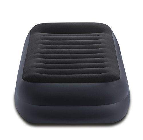 - Feature : Inflatable twin airbed with built-in electric pump, part of the new Dura-Beam Series of airbeds from Intex / Waterproof flocked top with Fiber-Tech beam construction provides long-lasting structural integrity / High-powered pump inflates mattress in approximately 2 minutes, it also deflates the mattress / Built-in pillows for added comfort, duffel bag included for easy storage and transport, with Fiber-Tech Construction & Built-In Pump / Dimensions: 39 x 16.5 x 75 inches (W x H x L), 300-Pound capacity