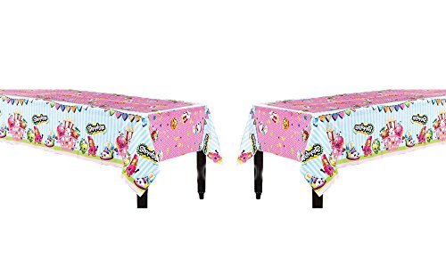 Shopkins Table Cover 2 Pieces. When planning a party, make sure a Shopkins Table Cover is at the top of your shopping list! Featuring Kooky Cookie, D'lish Donut, and Strawberry Kiss, it's a perfect match for your Shopkins party theme. Little shoppers will love a party table set with this plastic Shopkins Table Cover!