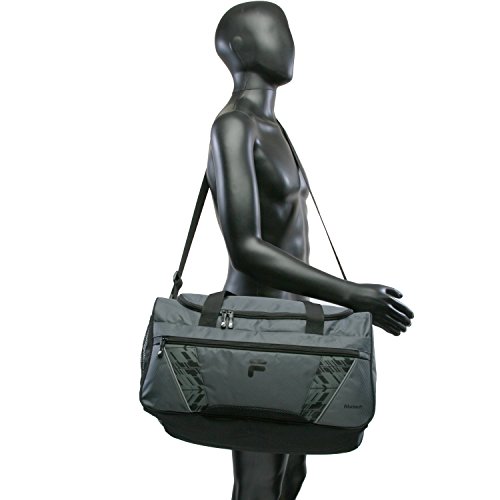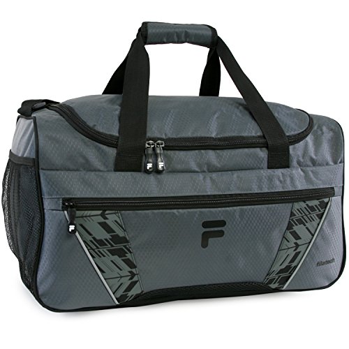 -. Binding : Apparel -. Brand : Fila -. Department : unisex-adult -. Feature : Sport duffel bag constructed of durable nylon fabric. Reinforced stitching at all stress points for durability. / Spacious main compartment with enough room for training clothes, water bottle, towel, and other accessories. / Side mesh compartment for quick access. / Adjustable shoulder strap. / Front EXOVENT mesh ventilation. -. Label : Fila Lage -. Manufacturer : Fila Lage -. Model : FL-SD-7222 -. PackageQuantity : 1 -. ProductGroup : Apparel -. ProductTypeName : LAGE -. Publisher : Fila Lage -. Studio : Fila Lage -. Title : Fila Cannon Medium Gym Sport Duffel Bag