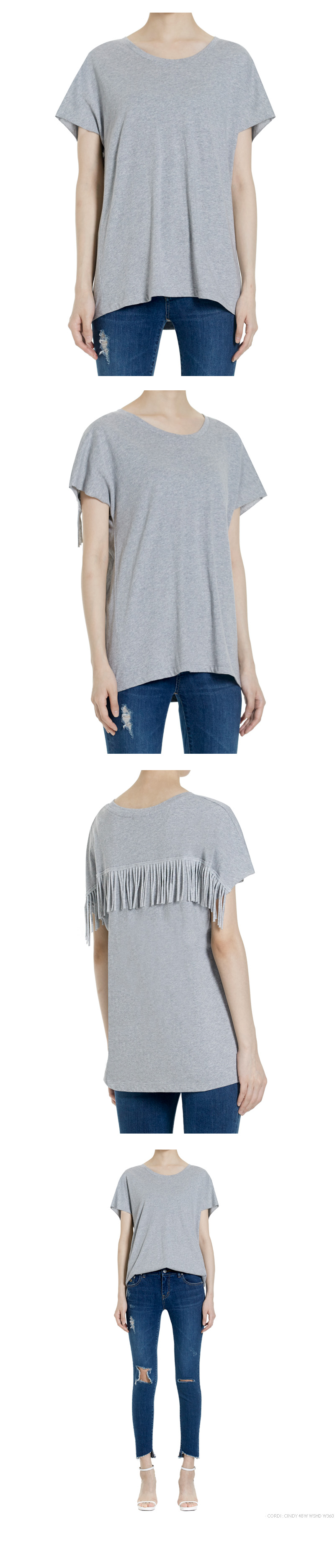 | - 등판에 제원단 프린지 디테일 - 레귤러 핏으로 다양한 하의에 매치 가능 - COTTON 100% | |
