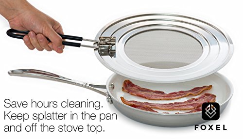 - ✌ LESS CLEANING, MORE RELAXING ❗ Do you like freshly-fried and mouth-watering bacon but absolutely hate having to clean up the greasy mess? Now you don’t have to! FOXEL ultimate oil splatter shield is here to help you enjoy your delicious fried eggs or fish without having to spend hours cleaning your stove top!