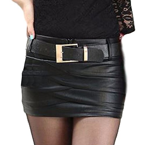 -. Feature : 足長効果抜群!シンプルでセクシーなフェイクレザーベルト付きミニスカートです。 / 前は重ね切替デザイン。後ろはポケット付き。裏地はパンツタイプになっています。 / カッコよく魅せるブラックフェイクレザーで、クールなイメージに。 / ベルト付きでトップスをインしたり、冬はブーツとコーデで着こなしの幅が広がるアイテムです。 / 前ファスナー。ベルトループ付き。