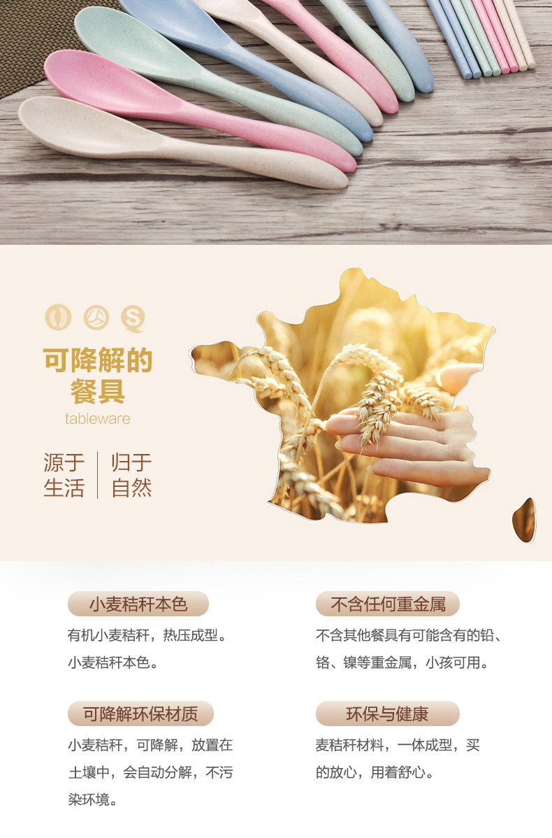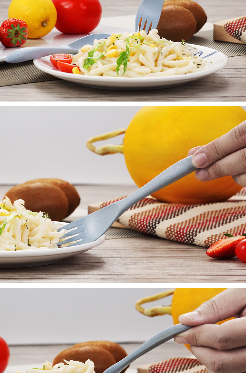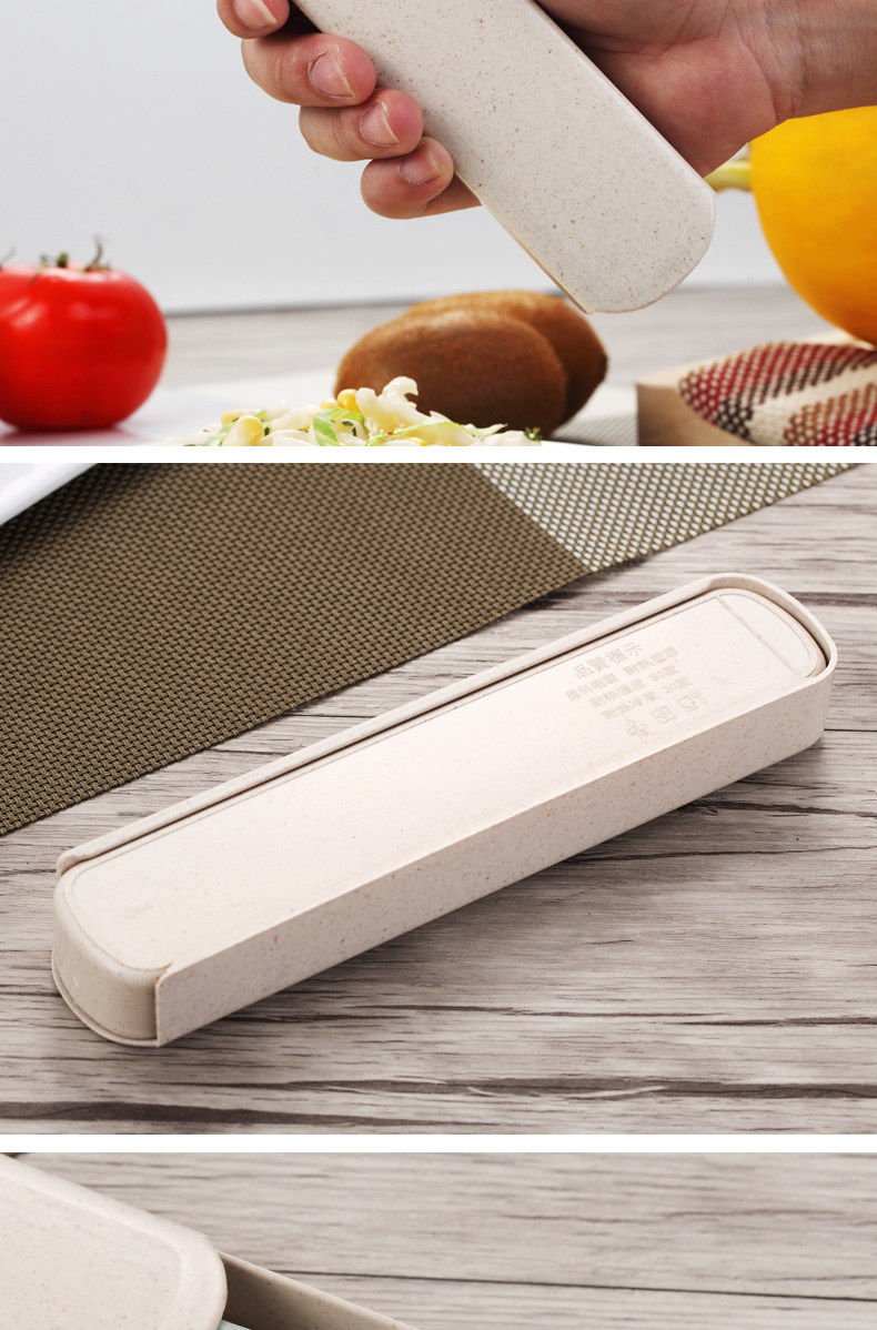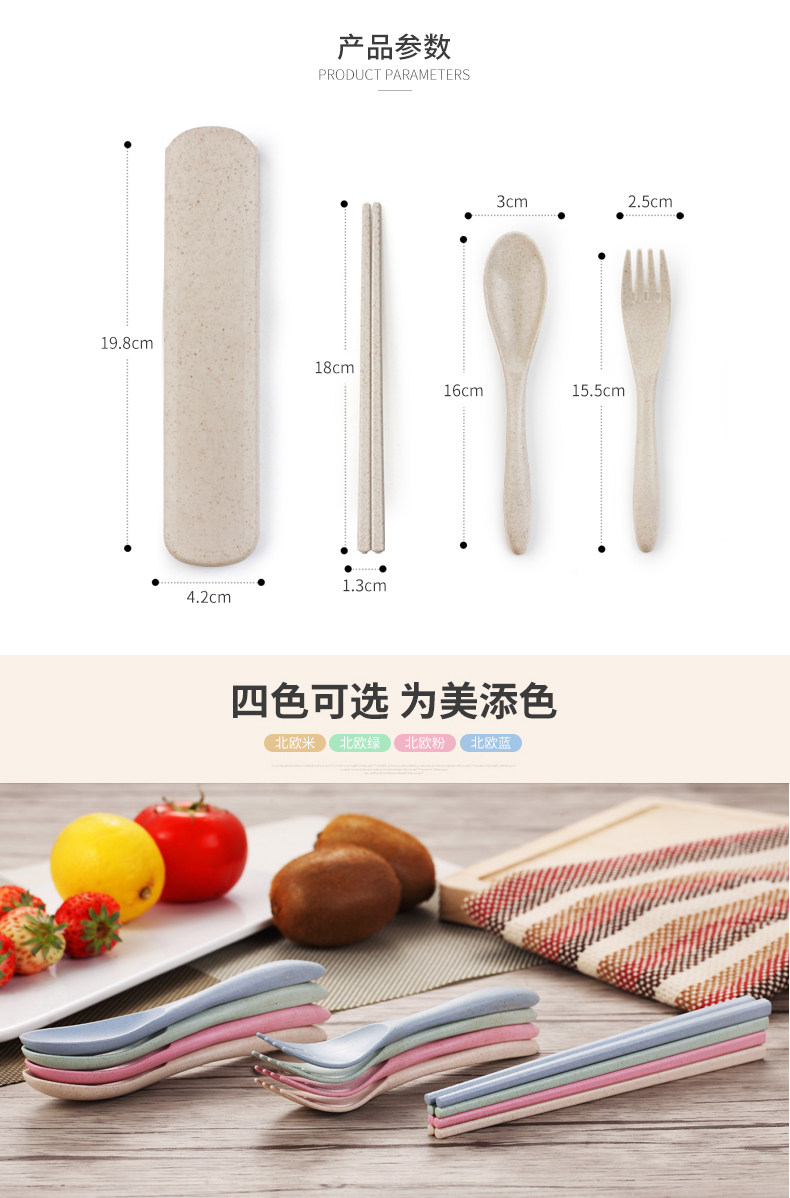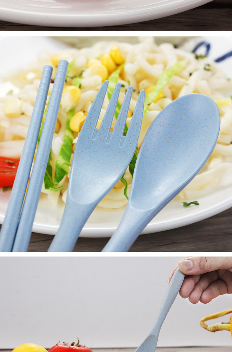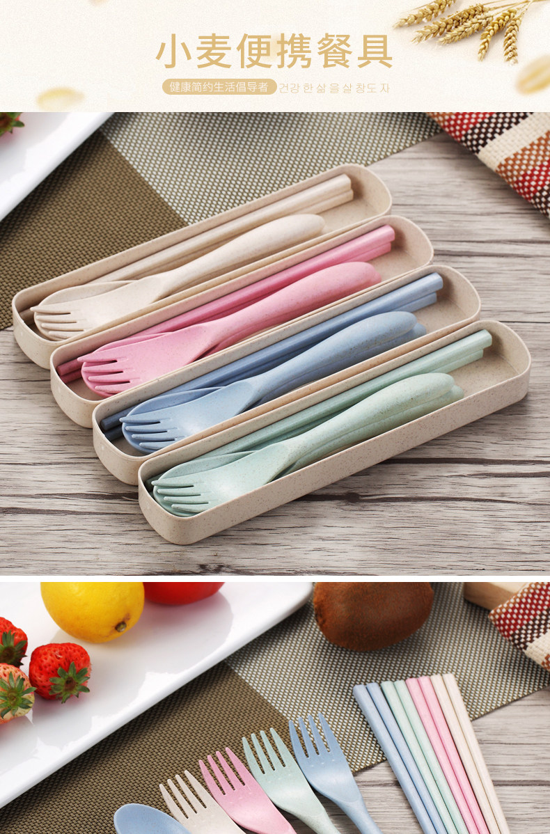 小麦秸秆便携餐具三件套勺子筷子叉子套装盒长柄家用学生创意可爱