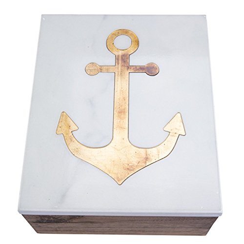 Large Wood Box With Gold Foil Anchor