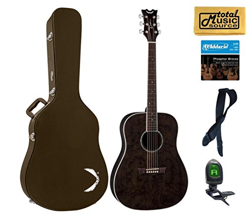 Studio : Dean Guitars Publisher : Dean Guitars Product Description The Dean AXS Dread Quilt Acoustic Guitar is an affordable steel-string with a full sound and some amazing looking wood. It features a dreadnought-size body made of quilt ash, with a top that really shows off this tonewood's exquisite grain, all highlighted by 3-ply body binding. The guitar is full-scale with a set mahognay neck and a comfortable "C" shape with rosewood fingerboard. Die-cast tuners make tuning a snap. Specs: Item ID - AX DQA TBK Model Name - AXS Dread Quilt Ash - Trans Black Dexterity - Right Handed Top Material - Quilt Ash Top Contour - Flat Top Neck Material - Mahogany Scale Length - 25 1/2" (648mm) Construction - Set Neck Neck Shape - C Fretboard Material - Rosewood Inlays - Abalone Dot # of Frets - 20 Fretboard Radius - 14" (356mm) Nut - PPS (Polyphenylene Sulfide) Nut Width - 1 11/16" (43mm) Tuners - Sealed Die Cast Hardware Color - Chrome Bridge - Rosewood Binding - 3 Ply W/B/W Finish - Trans Black Country of Origin - China Truss Rod - Dual Action Strings - D'Addario EXP11 (.012-.053) 0