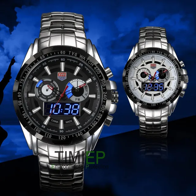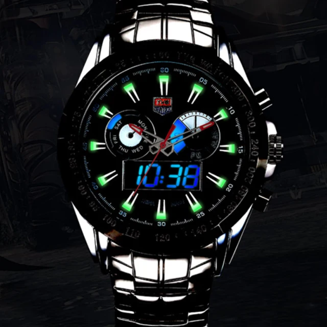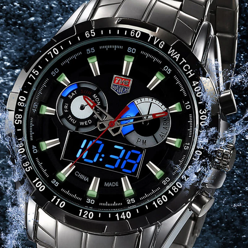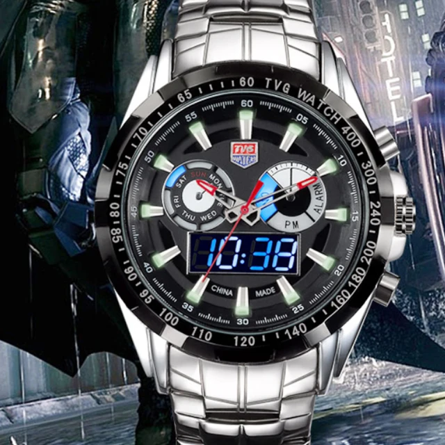 | [해외] TVG 석영 군사 남성 스포츠 남성 전체 스틸 시계 시티 헌터 블루 이진 LED 포인터 30AM 방수 시계 예뻐요 C781 |
