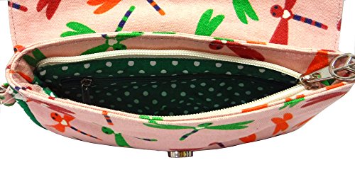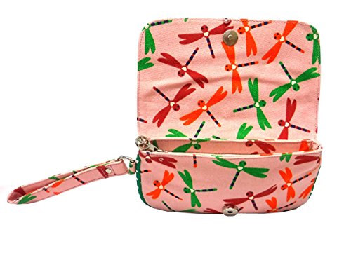 -. Title : Bungalow360 Pink Dragonfly Vegan Cotton Canvas Wristlet