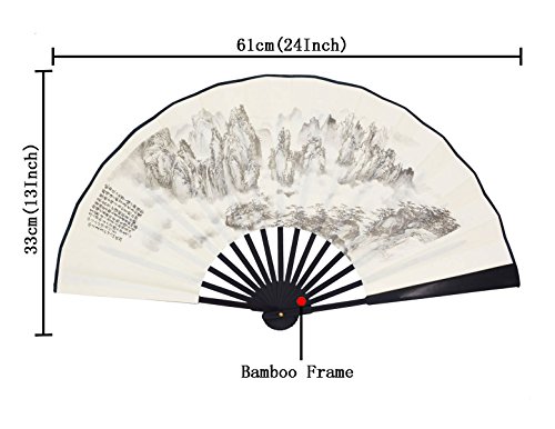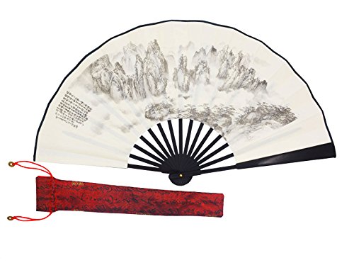 Amajiji Handmade Silk Folding fan for Men Chinese Style (33CM) (LXH-34)