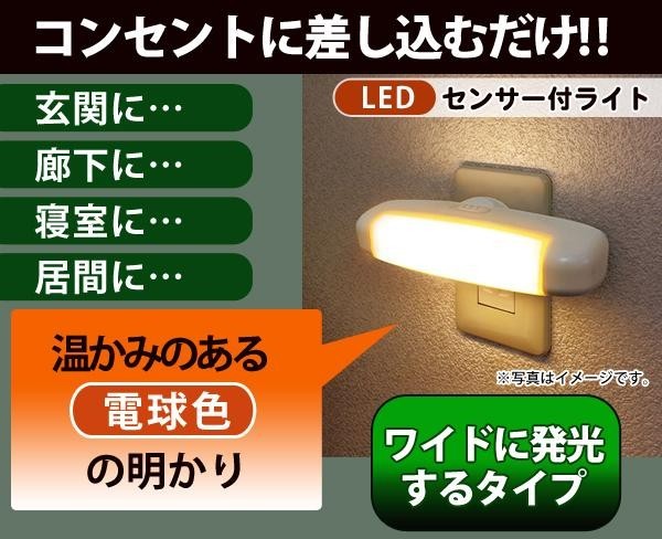 | 直接コンセントに差し込むだけで、すぐにご使用いただけます(明暗モード時は暗くなると自動的に点灯し、明るくなると自動的に消灯します)。プラグ部分には電気火災予防の耐トラッキングカバーを装着!光源にLEDを採用していますので消費電力が少なく経済的です。 |
