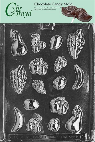 Cybrtrayd Life of the Party F011 Grapes, Banana, Pear, Cherry, Avocados Fruit Chocolate Candy Mold in Sealed Protective Poly Bag Imprinted with Copyrighted Cybrtrayd Molding Instructions
