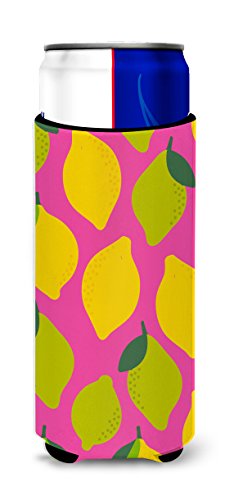 Caroline's Treasures Lemons & Limes On Pink Michelob Ultra Hugger For Slim Cans, Slim Can, Multicolor