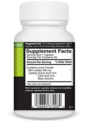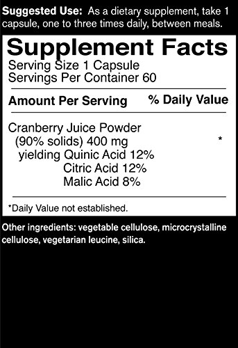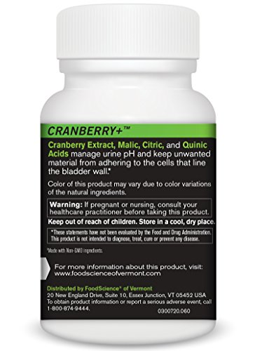 Studio : Food Science of Vermont Publisher : Food Science of Vermont Binding : Health and Beauty Product Description FoodScience of Vermont's Cranberry contains more than just cranberry. Malic, Citric, and Quinic Acids are included to acidify the urine and help keep unwanted material from adhering to the cells that line the bladder wall.* This unique formula supports healthy urinary tract function and health.* Each capsule includes 400mg of cranberry. 0