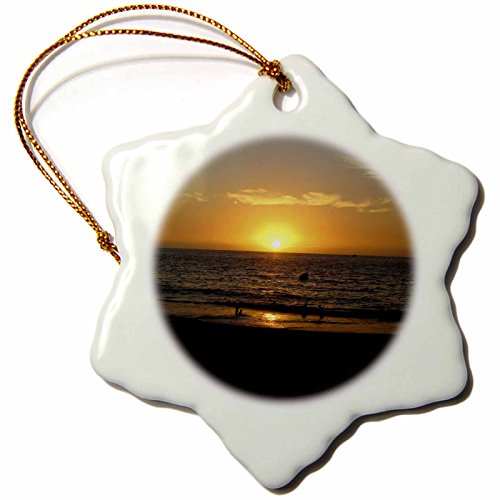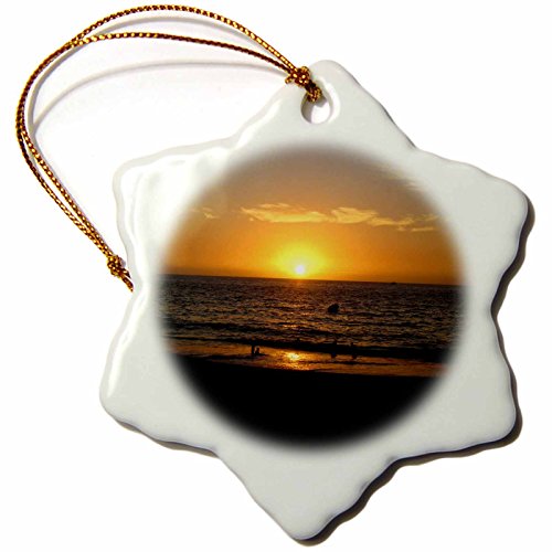 3dRose orn_18567_1 Sunset at The Beach Porcelain Snowflake Ornament, 3-Inch