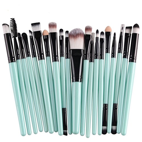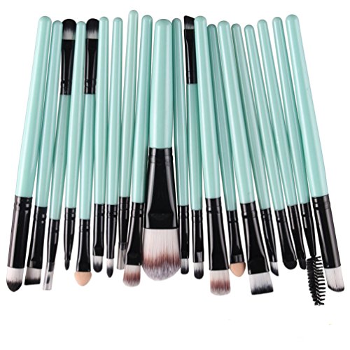 KOLIGHT 20 Pcs Pro Makeup Set Powder Foundation Eyeshadow Eyeliner Lip Cosmetic Brushes (Black+Green)