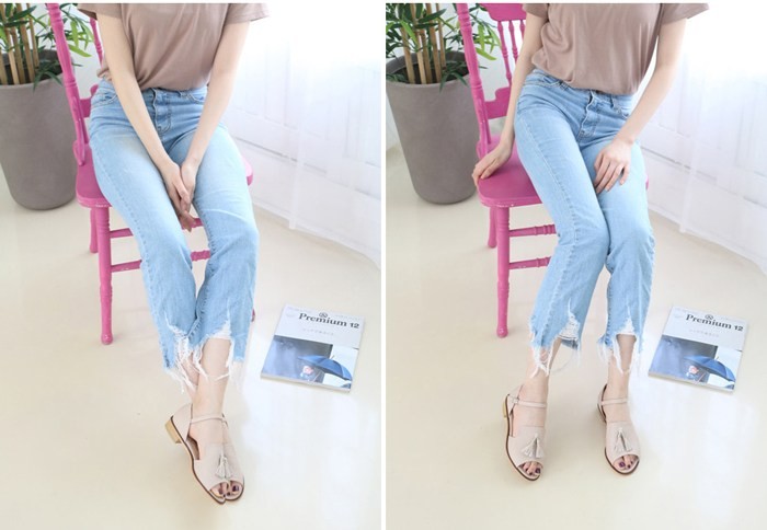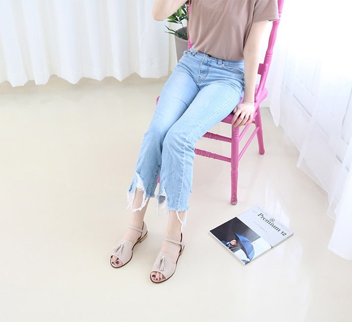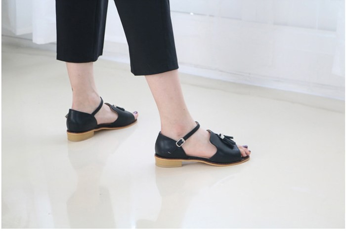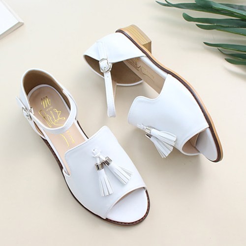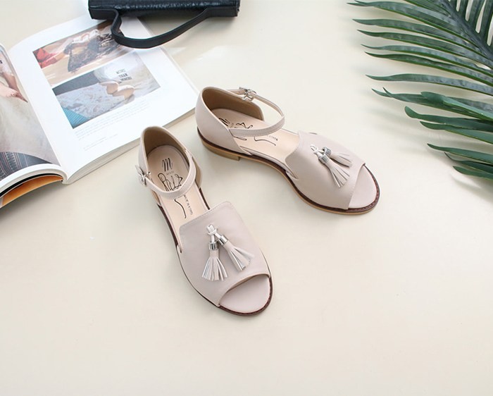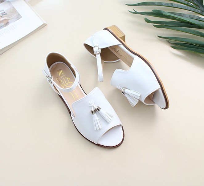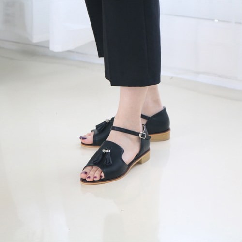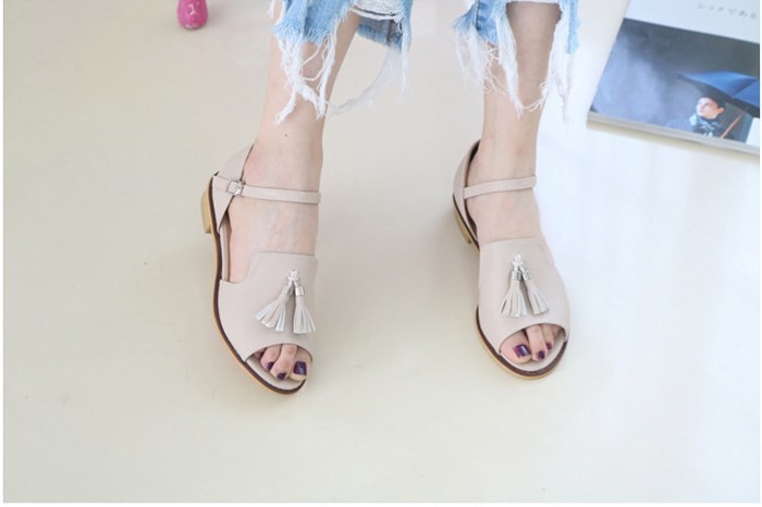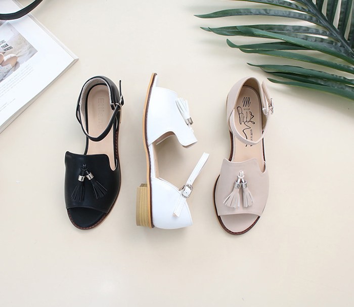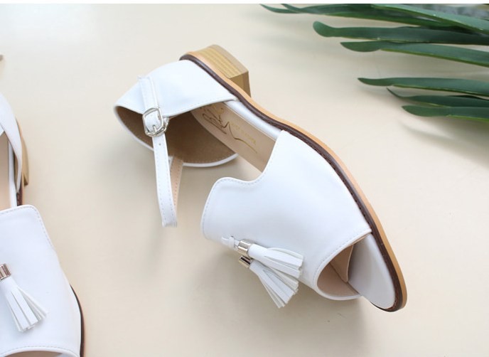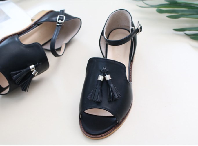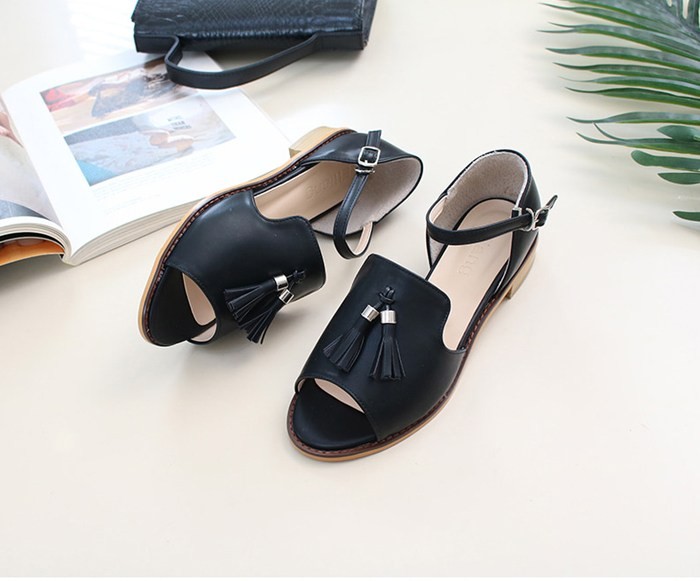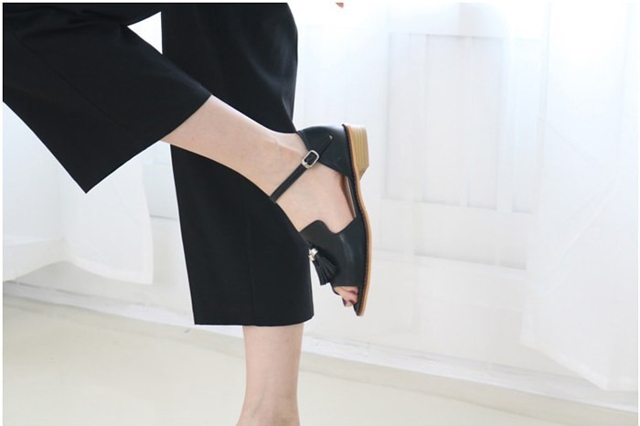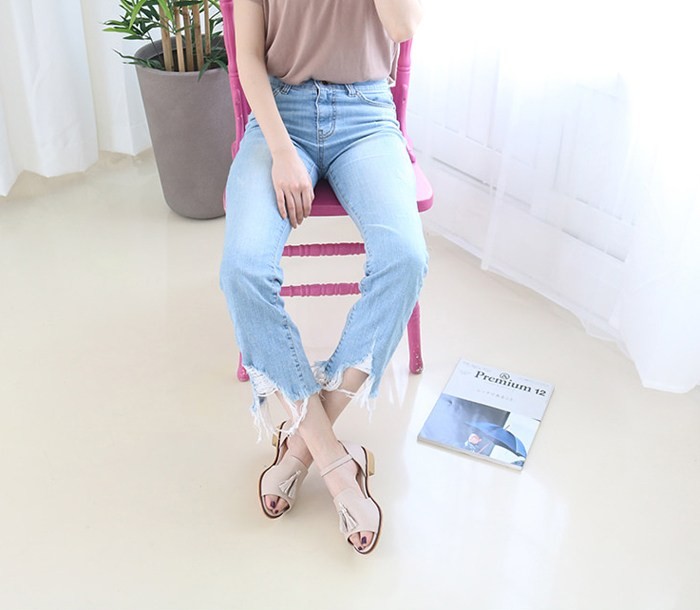 商品名:サンダル レディース ローヒール 太ヒール チャンキーヒール タッセル 2018 夏 ファッション 靴 婦人靴
