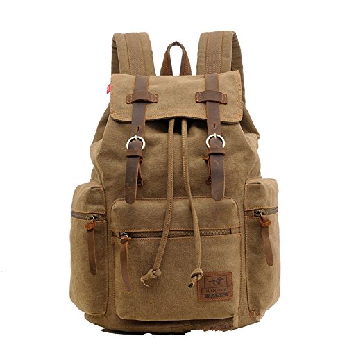 Title : Sechunk Multifunction Cotton Canvas Leather Backpack (Brown)