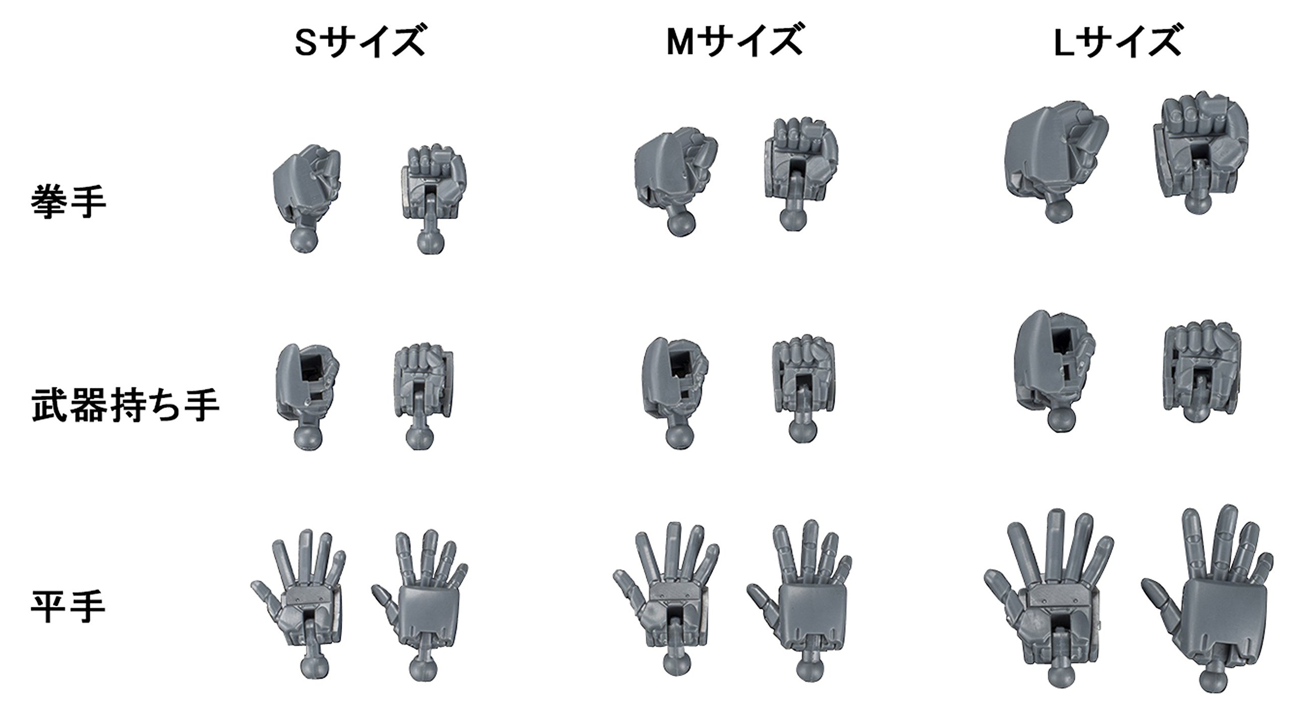 3 sizes, 3 patterns, hand parts set that can correspond to MS of various sizes totaling 36 The round finger appeared in the second bullet! S, M, L 3 kinds of parts are attached to each 2 right and left.