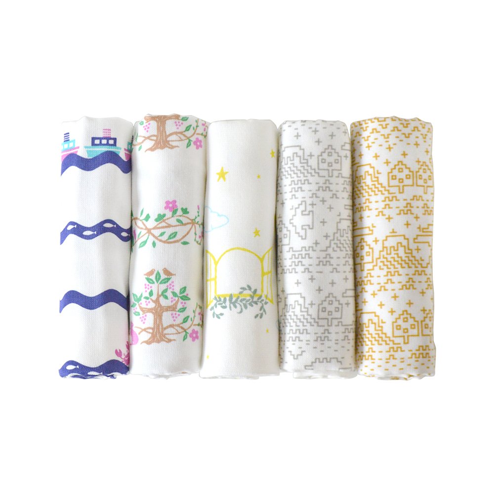 TRANPARAN original gauze face towel 5 pattern set (Sen nofuji Gold Wind Silver Wind Dekotte story 3 pattern)