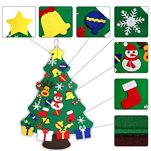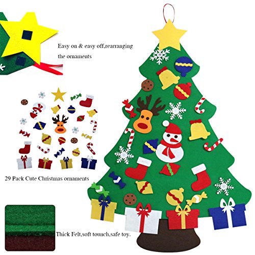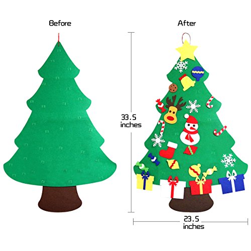 - ❤Made from felt - looks like a Christmas tree.Measurement: 36’’ Long*31’’ Wide,come with 30 packs well constructed Christmas ornaments.Suitable for kid age 3+.