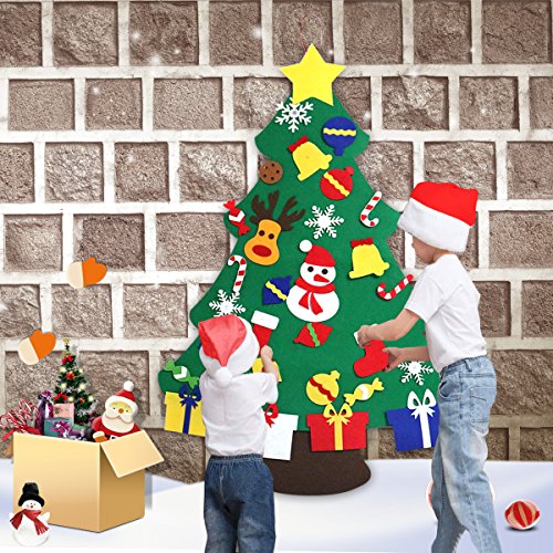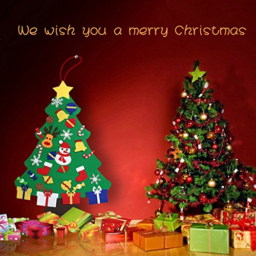 3 ft Felt Wall Christmas Tree Decoration for Kids+30 pcs Christmas Ornaments Sticker Wall or Door Hanging for Christmas