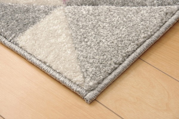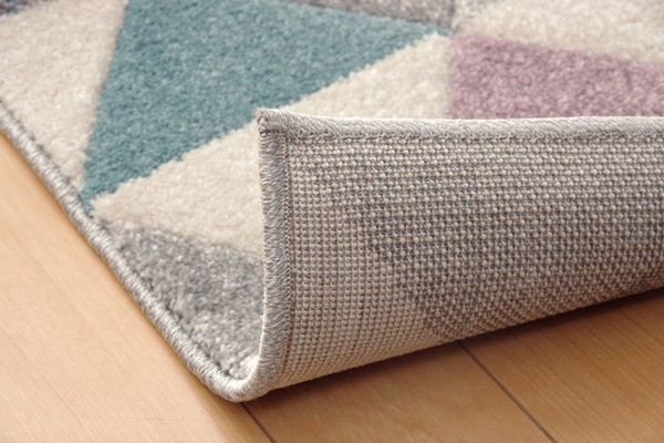 モルドバ製のウィルトン商品です。本商品のパイル部分にはポリプロピレン素材を使用しております。ポリプロピレンはヘタリにくく、耐久性に優れ、繊維の中でも軽い素材です。また、汚れが付着しにくく、遊び毛や毛玉が非常に出にくいという特徴もあります。鮮やかな色味とシンプルな幾何柄のデザインが特徴です。