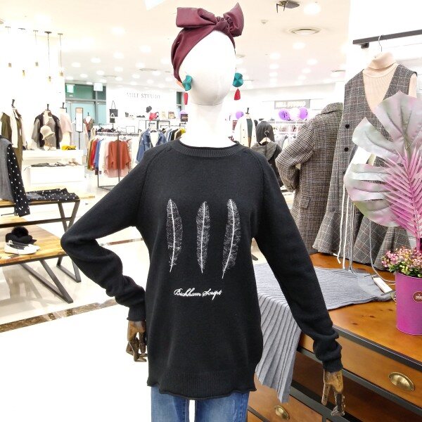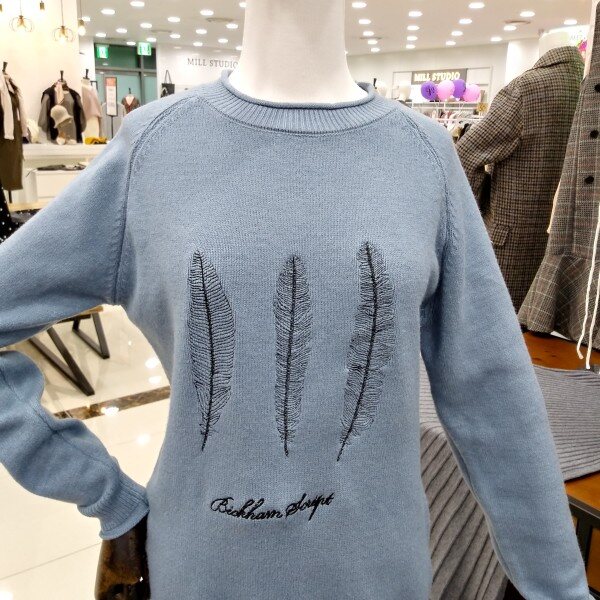 깔끔한 자수포인트 니트티로 기장감도 힙선아래라 편하고 소매단 과 밑단 시보리처리로 데일리하기좋은 니트티이에요