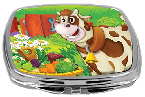 Rikki Knight Cute Brown Cow Cartoon with Farm Vegetables Design Compact Mirror, 17 Ounce
