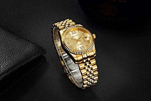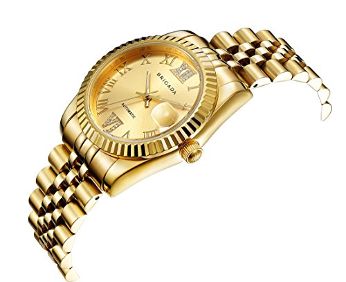 BRIGADA 손목시계 맨즈 자동 감기 캘린더 부여 고저스(gorgeous) 골든 벨트 어른 패션 시계