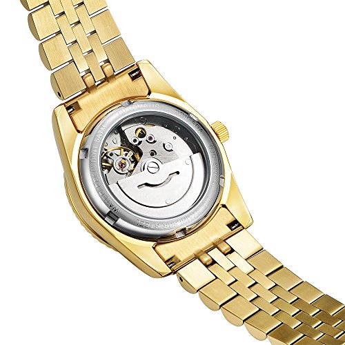 ?.【소개】금색의 스테인레스 벨트와 금색의 문자판에 더욱 더 패션인 맨즈 손목시계와 느껴져 있습니다,뒤개는 스켈리턴에 움직이기 시작하면 내용의 동작도 보입니다,캘린더도 붙이고, 1계단은 캘린더를 조정합니다,니카이단은 시간을 조정합니다.
